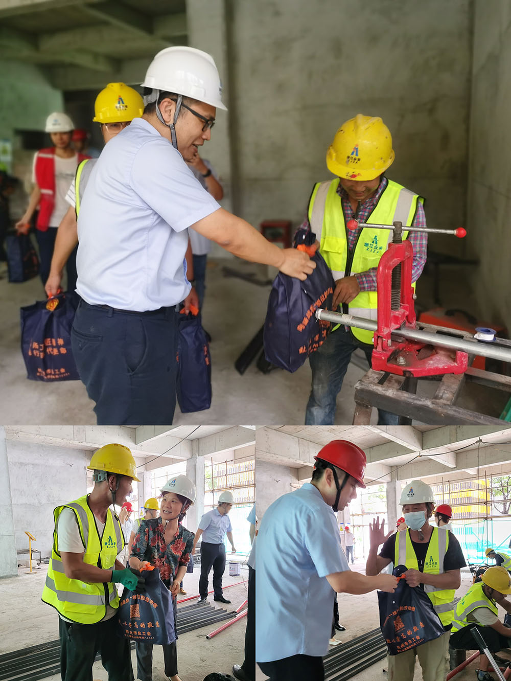 7月26日下午,市建設(shè)工會主任李中,副主任裘江宇,集團(tuán)黨委委員、副總經(jīng)理、工會主席楊捷攜工會、團(tuán)委相關(guān)人員一行,赴長睦指揮部工程一線,親切慰問在高溫酷暑下奮戰(zhàn)一線的建設(shè)者們,同時關(guān)心關(guān)愛暑期來杭與父母團(tuán)聚的“小候鳥”們。