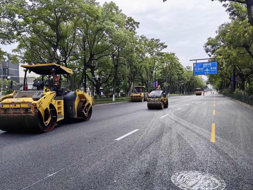 為保證施工順利進行,確保完成節(jié)點目標,環(huán)北天目指揮部克服工期緊、任務重、交通流量大、中高考期間無法施工等諸多困難,充分發(fā)揮“能吃苦、能戰(zhàn)斗”的鐵軍作風,嚴格落實施工單位采取多種措施加大人員力量、機械設備投入。充分利用半夜12點后車輛較少的時間段,現(xiàn)場協(xié)調指揮解決施工推進中存在問題。最終克服雨季等不利條件,搶抓晴好天氣,高效有序完成了全部瀝青攤鋪施工。