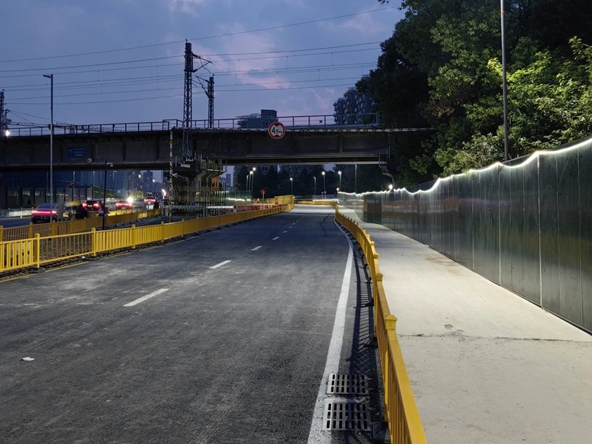 自崇杭街項(xiàng)目開工以來(lái),集團(tuán)統(tǒng)籌謀劃,多方協(xié)調(diào),先后攻克了管線遷改復(fù)雜、涉宣杭鐵路保護(hù)施工等難題。崇杭街現(xiàn)狀交通流量大,需確保雙向四車道通行,交改難度極大。對(duì)此,指揮部積極與臨平、拱墅區(qū)交警部門溝通,優(yōu)化交改方案。在通行道路兩邊安裝防護(hù)欄桿及施工圍擋,并落實(shí)專人指揮,確保交改期間行人及社會(huì)車輛安全順利通行。